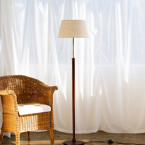 支柱には無垢のビーチ材を使っており、深みと高級感を感じていただけます。また麻のシェードが木の温かさを一層引き立たせてくれます。