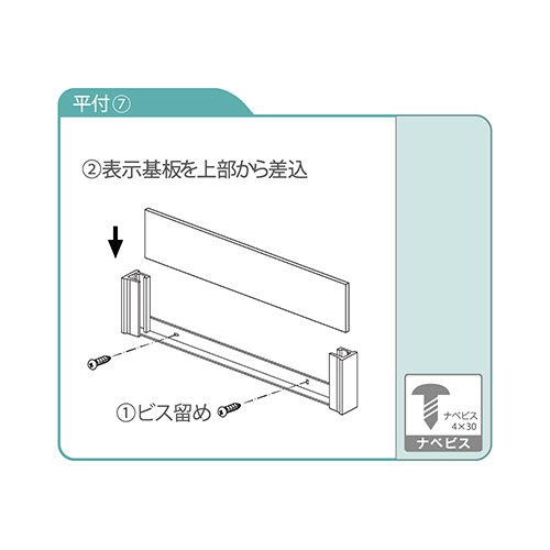 | 取付方法 | ![]() プレート交換式 ■表示面の取り付け方 表示面を下部の樹脂バネに密着させながら取り付けてください。 ※取付ネジ(ナベビス・サラビス)は付属しておりません。 ※取り付ける壁面により取付方法が異なる場合がございます。 |