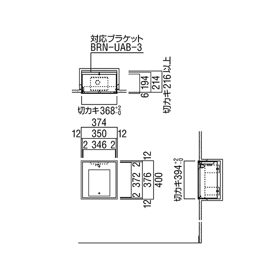 | 備考 | ゼンマイ式警報ベル(開扉時)付 スチール(t1.6)扉付 文字入り ブラケット(別売) BRN-UAB-3 |