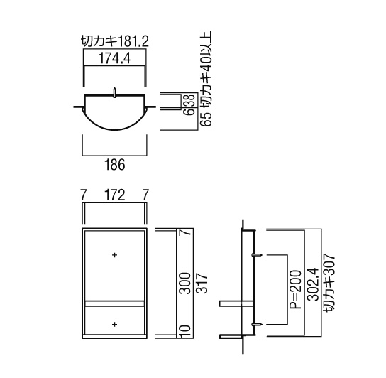 | サイズ(mm) | 186×103×317![]() |